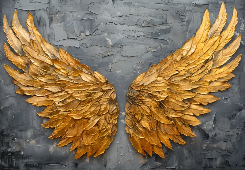 Quadro Asas Douradas – Arte Abstrata Luxuosa com Folhas em Ouro sobre Fundo Texturizado Cinza