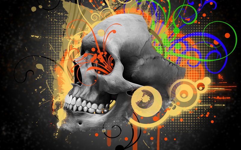 NovoQuadro Caveira Colorida – Arte Urbana Moderna com Estilo Grafite e Abstrato Neon